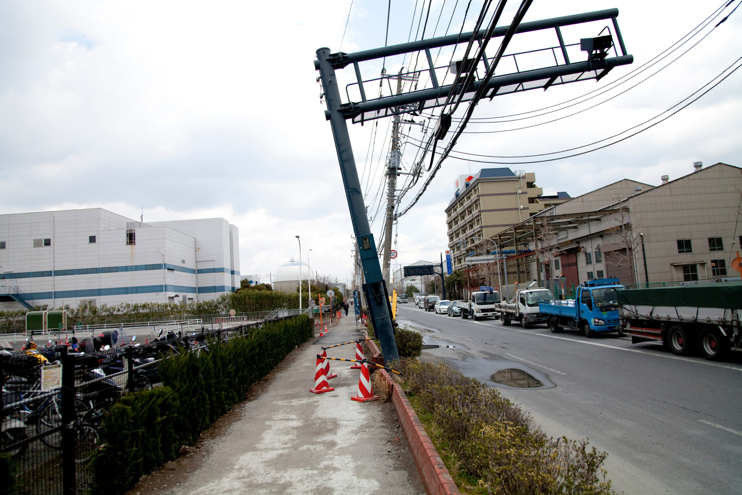 少し落ち着いたあと、窓の外に目を向けると、向かいの細長いビルが大きくしなるように揺れていて、普段見慣れた建物とは思えない動きに驚かされました。あれを見た瞬間の怖さは、今でも印象に残っています。